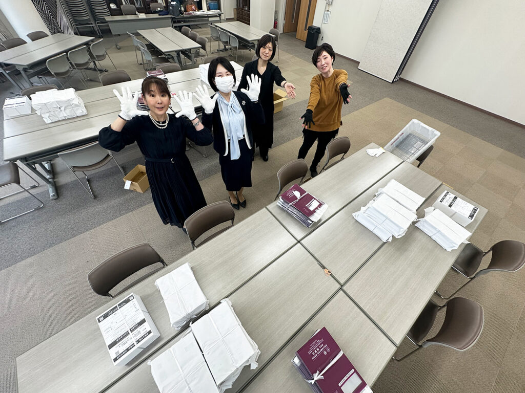 6日(金)はまだ慣れていなくて、46回生と77回生で6,000部、先輩方のヘルプとあわせて9,000部でした。