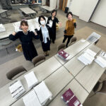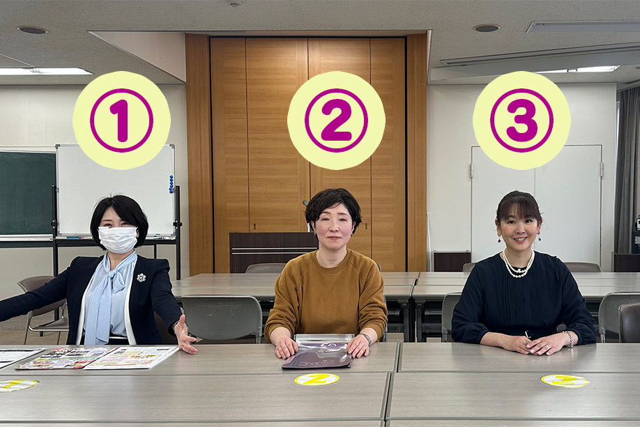 下の写真のように、長机に3人1チームで座ってください。